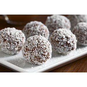 Coconut Balls. Ingredients: 2 cups desiccated coconut powder 1 cup condensed milk 1/2 teaspoon cardamom powder Ghee or butter for greasing hands 1/4 cup chopped nuts (cashews, almonds, pistachios) (optional) Directions: 1) In a non-stick pan, combine desiccated coconut powder and condensed milk. 2) Cook the mixture over low heat, stirring continuously, until it thickens and starts leaving the sides of the pan. 3) Add cardamom powder and chopped nuts (if using). Mix well. 4) Remove the mixture from heat and let it cool slightly. 5) Grease your hands with ghee or butter and shape the mixture into small round balls (laddoos). 6) Roll the laddoos in extra coconut powder for garnish (optional). 7) Repeat the process with the remaining mixture. 8) Allow the coconut laddoos to cool completely before serving or storing in an airtight container.