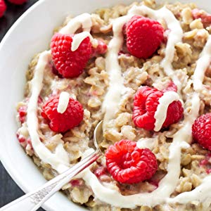 LOW-SUGAR COCONUT RASPBERRY OATMEAL Ingredients: ¼ cup steel-cut oats uncooked 2 tablespoons coconut powder and 2 ounces water ½ cup frozen raspberries 1 tablespoon unsweetened coconut flakes 1 teaspoon chia seeds Directions: 1) In a small pot, whisk together oats, coconut powder, water, raspberries, and salt over medium heat. 2) Simmer 10 to 20 minutes, stirring occasionally to prevent burning, until oats are creamy and tender. If the oats are getting too dry, add ¼ cup water to the pot. 3) Pour oatmeal into a bowl and top with coconut flakes and chia.